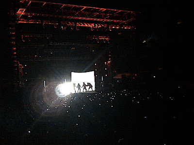 Il se passe plein de choses excitantes dans ma vie en ce moment, certaines sérieuses, d'autres beaucoup plus futiles. Dans la première famille, la naissance de Yagg, évidemment. Dans la seconde, mon iPhone tout nouveau tout beau, et, quelques jours plus tard, le concert de Mika, aux Arènes, à Nîmes, «la plus belle salle du monde» (c'est Mika qui l'a dit, et je suis totalement d'accord avec lui: un concert aux Arènes, c'est magique. Sauf si on a envie de faire pipi, ceci dit).Bref, ce lundi 21 juillet, MyLove, MyLittleLove et moi sommes arrivées aux Arènes un bon quart d'heure avant l'heure officielle du début des festivités. Nous avons trouvé trois places plutôt top, à gauche de la scène, pas trop loin pas trop près, tout comme j'aime. Je ne suis pas fan de la fosse, je suis trop petite, je ne vois jamais rien, et en plus je n'aime pas les gens (j'assume), ça m'agace toujours d'être bousculée etc.